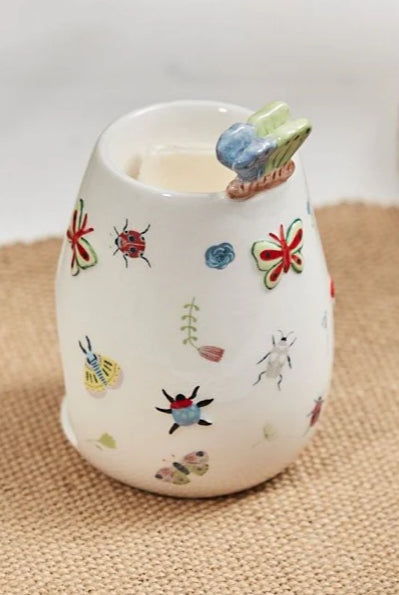 3D Butterfly wax melt Burner in white, with embossed insects. 13cm x 9cm.